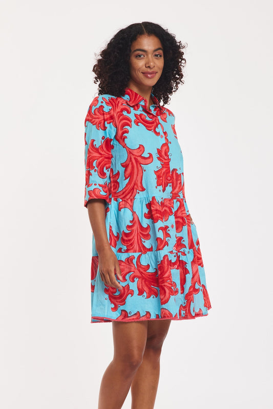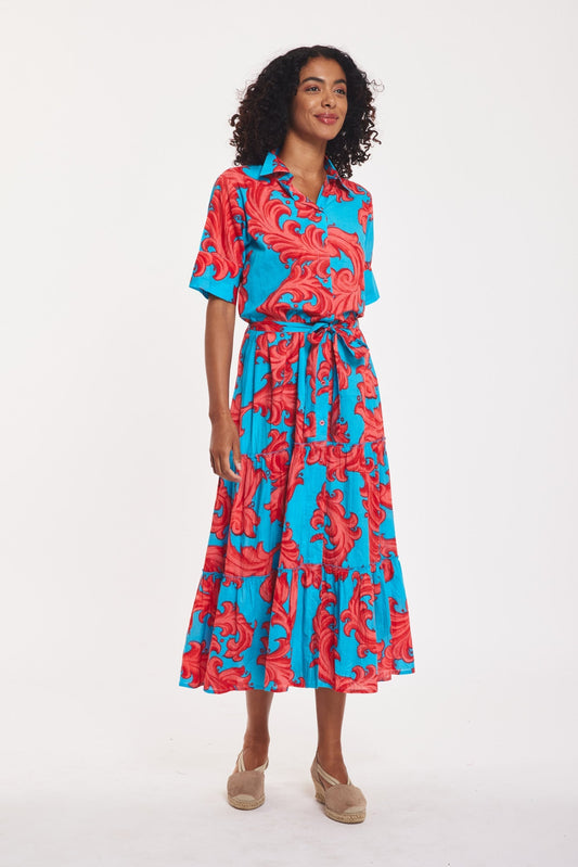 Carlotta Midi Shirt Dress Baroque Swirl Blue Red