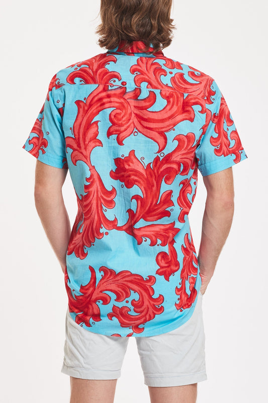 Aurelio Men's Shirt Baroque Swirl Blue Red