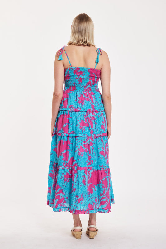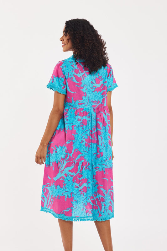 Cadenza Midi Dress Big Coral Super Pink Blue