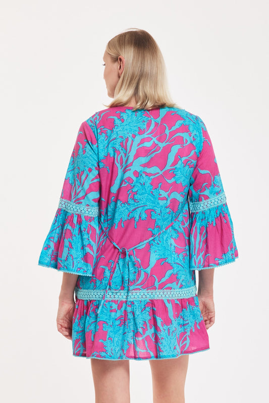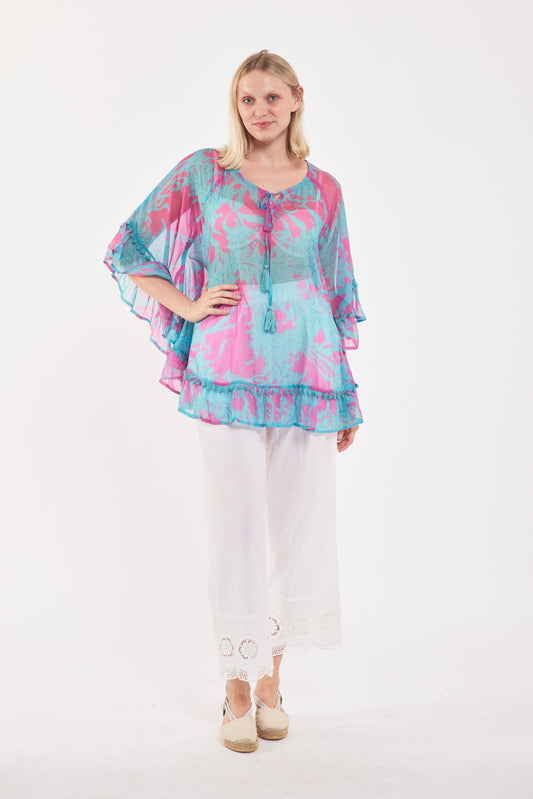 Cinzia Chiffon Tunic Big Coral Super Pink Blue