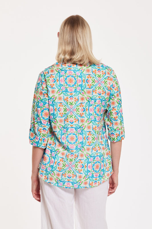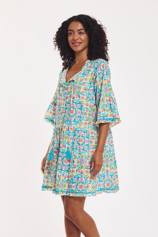 Gabriella Maxi Caftan Shirt Dress White Multi