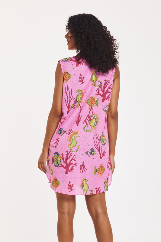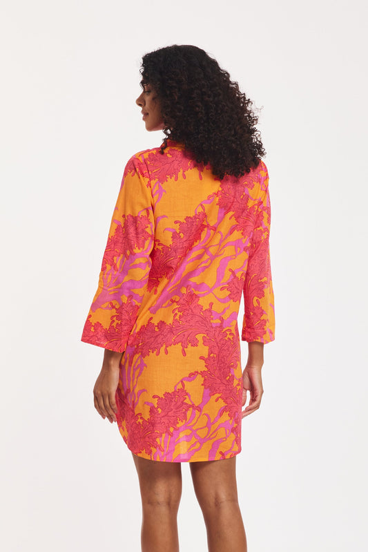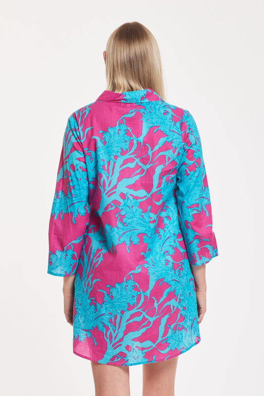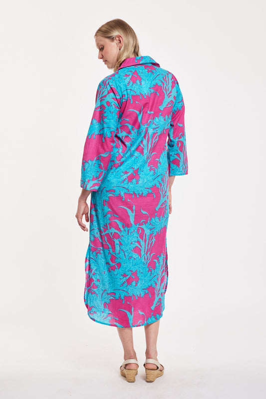 Gabriella Maxi Caftan Shirt Dress Big Coral Super Pink Blue