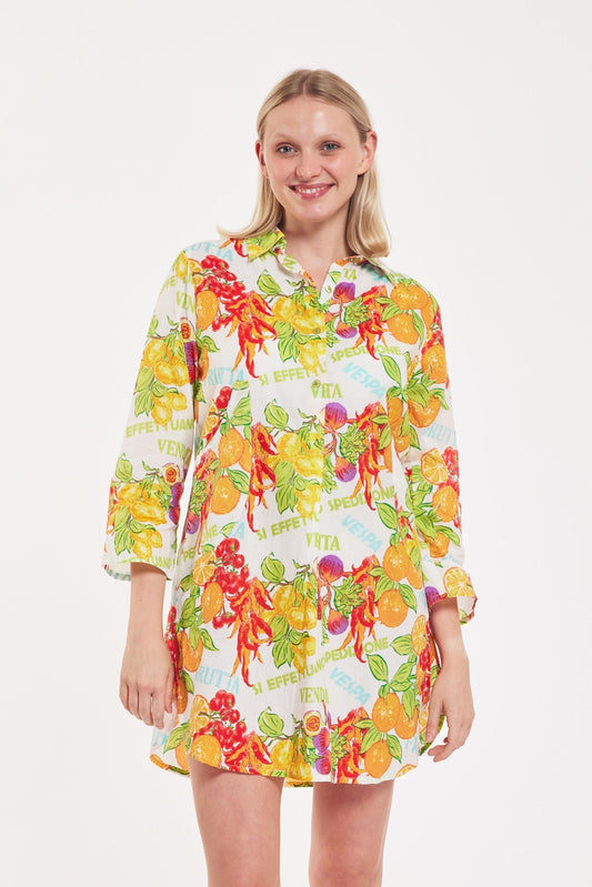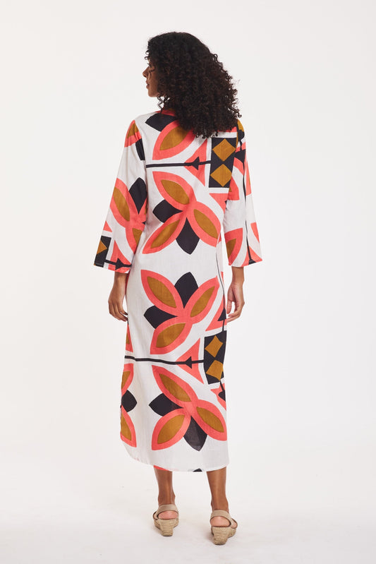 Gabriella Maxi Caftan Shirt Dress White Multi